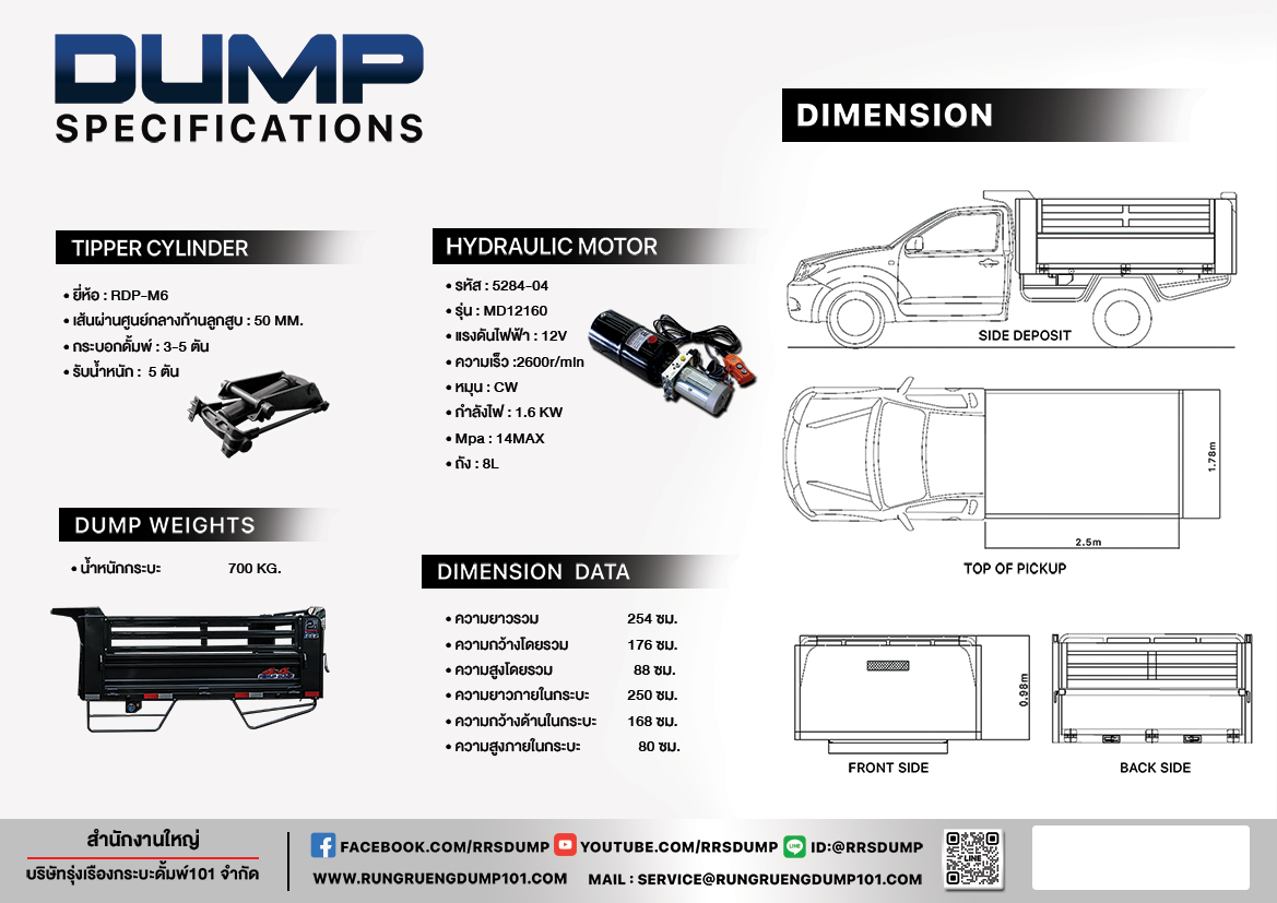 • กระบอกดั้มพ์ : 3-5 ตัน