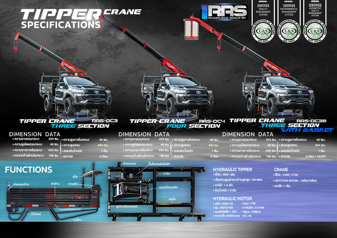 เราผลิตและติดตั้งกระบะดั้มพ์โดยทางบริษัท รุ่งเรืองกระบะดั้มพ์101 จำกัด บริษัทที่มีประสบการณ์มากกว่า 40 ปี เป็นผู้ผลิตและจำหน่ายรถกระบะพร้อมดั้มพ์และรถกระบะพร้อมติดตั้งเครนที่ได้มาตรฐานและได้รับการรับรอง เราปรับแต่งประเภทและขนาดต่างๆ เพื่อการใช้งานที่ หลากหลายและให้บริการทั่วประเทศไทย เราพร้อมผลิตรถบรรทุกที่ตรงตามความต้องการของลูกค้า บริษัทรุ่งเรืองกระบะดั้มพ์101 ให้บริการลูกค้าทั่วประเทศไทยและในบางประเทศที่ลูกค้าชาวต่างชาติซื้อผลิตภัณฑ์ของเราเพื่อใช้ในประเทศของตนเองด้วย ถึงผู้สนใจซื้อหรือติดตั้ง กระบะดั้มพ์พร้อมใช้หรือรถกระบะติดเครน โปรดอย่าลังเลที่จะติดต่อเราผ่านช่องทางการติดต่อด้านล่างนี้